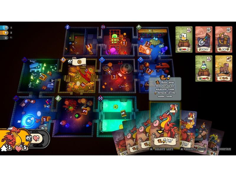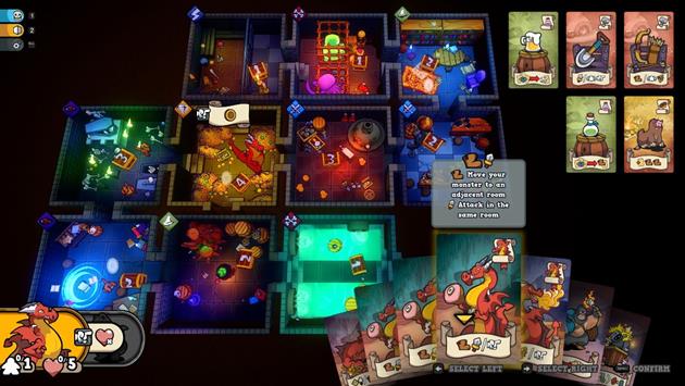 The digital game brings the tabletop experience faithfully to life, with the same art style and gameplay, only now being that the computer controls the nasty heroes invading our lair. This means you can play solo against the AI, or get a gaming going remotely with your friends from afar. Furthermore, YarnCat Games has boosted the visuals with fluid animation and a tutorial to help onboard new players. There’s never been an easier, more convenient way to get into hero thwarting!