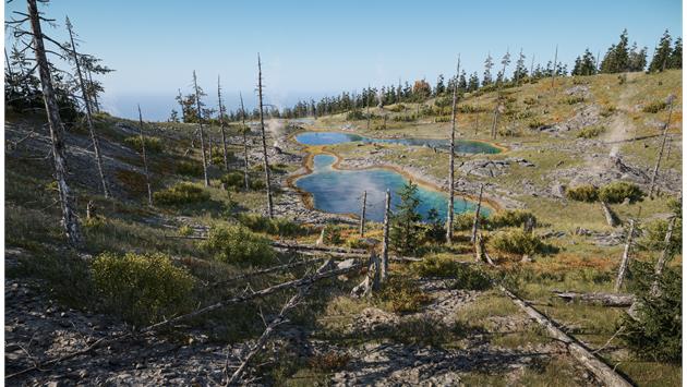 Die legendäre Insel Kolguyev kehrt zurück, neu erstellt mit der Enfusion Engine. Spieler/-innen können ein zerklüftetes Vulkangebiet mit Kiefernwäldern, felsigen Bergrücken und verlassenen Industrieanlagen erkunden, das einen deutlichen Kontrast zu den grünen Tälern von Everon bildet. Die heißen Quellen, Schwefelbäche und Überreste der alten Kohleindustrie der Insel sorgen für Atmosphäre und strategische Tiefe.