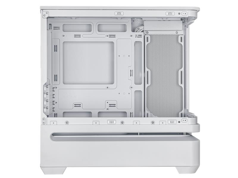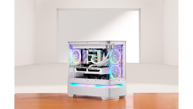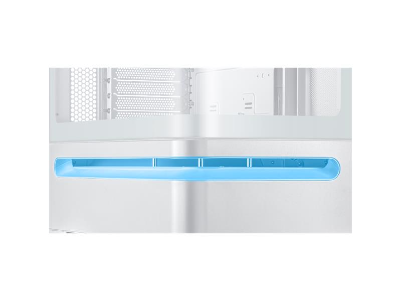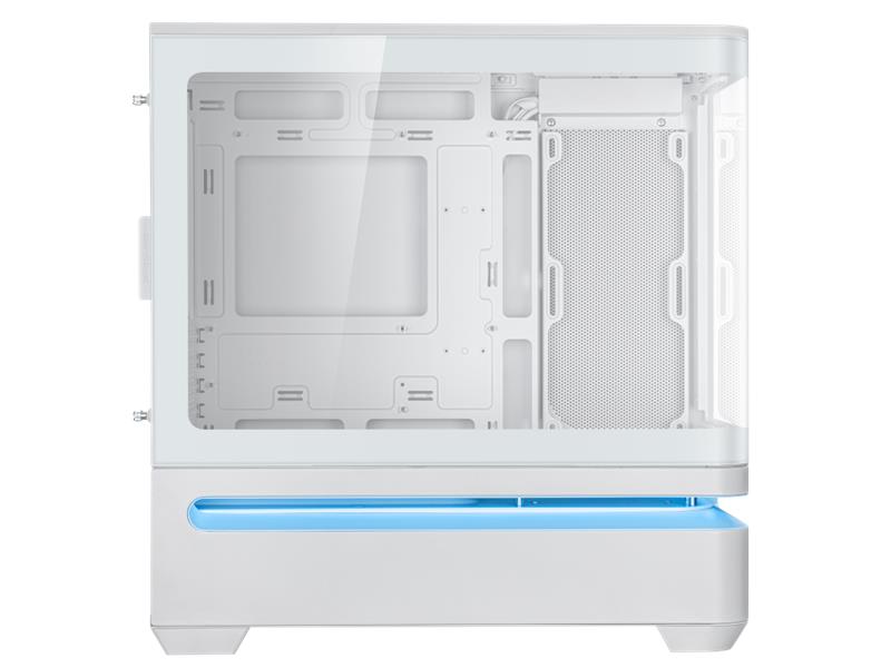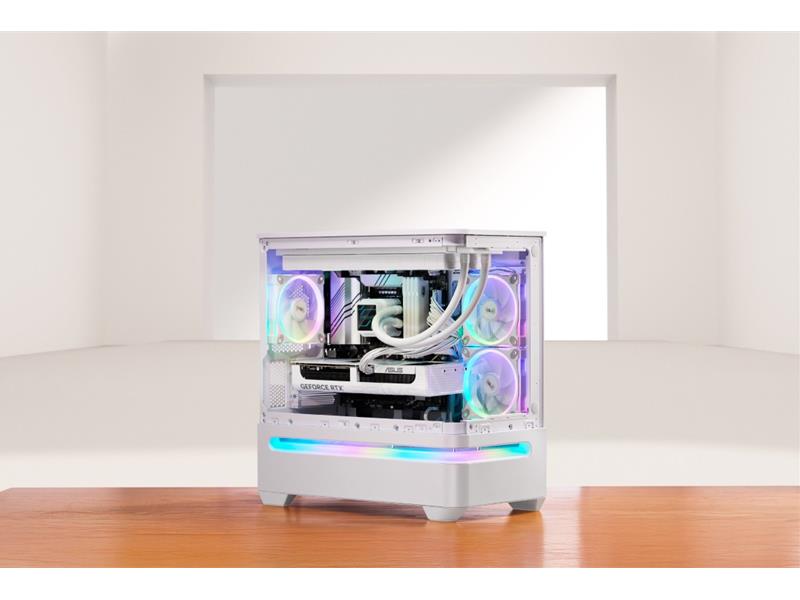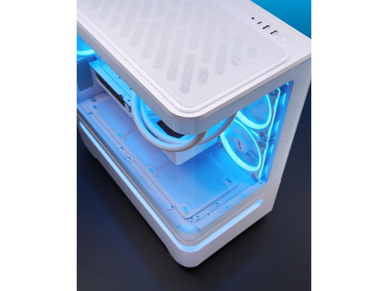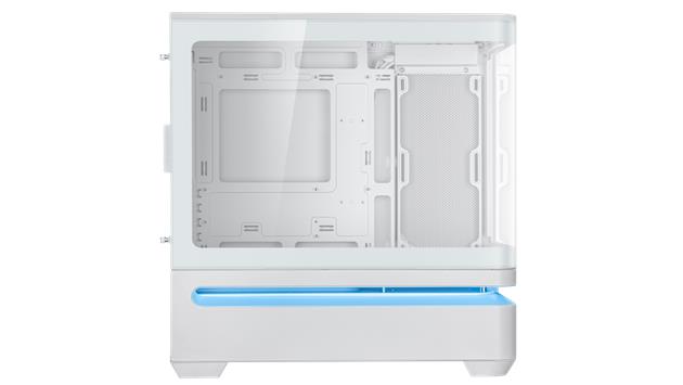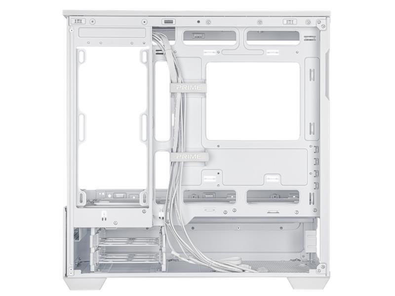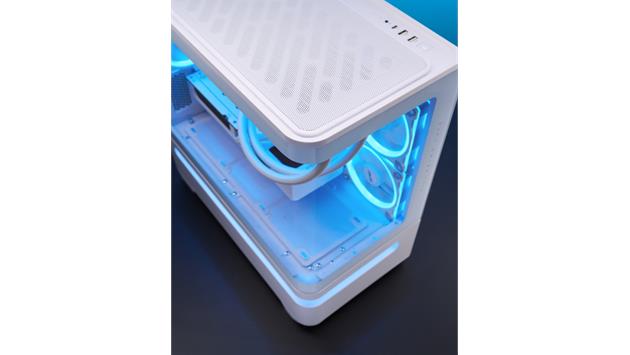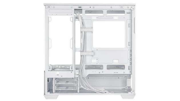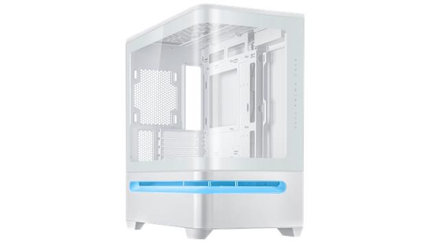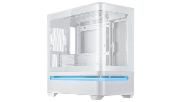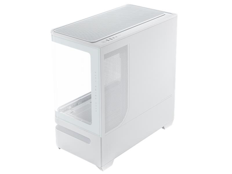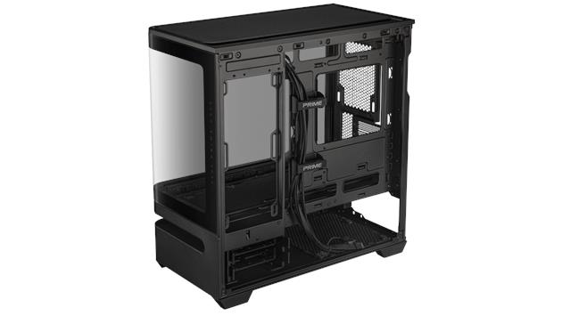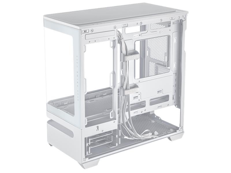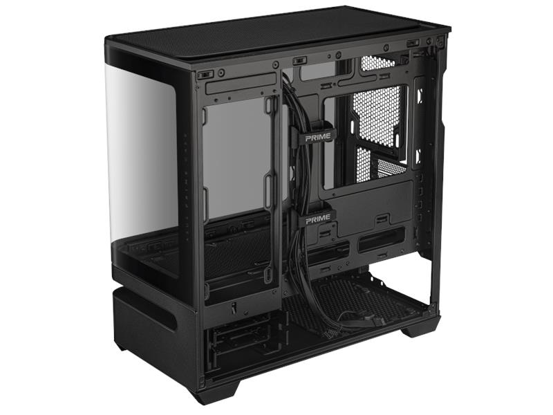 Das geradlinige Design des Prime AP202 ARGB zieht nur so viel Aufmerksamkeit auf sich, wie der Benutzer es wünscht. Es ist in Schwarz oder Weiß erhältlich, sodass Benutzer die Farbe wählen können, die am besten zu ihren internen Komponenten passt. Dank eines gebogenen Glasfensters, das sich fast um die Hälfte des Gehäuses erstreckt, können Benutzer ihre Komponenten aus fast allen Blickwinkeln sehen.
