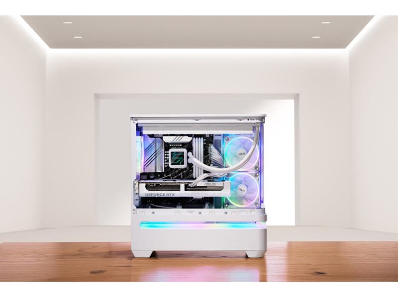 Das ASUS Prime AP202 ARGB wird in schwarz und in weiß erhältlich sein und ist mit drei ASUS Prime MR120 ARGB-Lüftern ausgestattet, um die Ästhetik des Systems zu verbessern. Diese Lüfter werden in Kürze auch separat erhältlich sein. Beide Modelle dieses Gehäuses verfügen über ein langes Lichtband im unteren Bereich des Gehäuses, das eine vollständig anpassbare LED-Umgebungsbeleuchtung bietet, während ARGB-Lüfter den Rest des Gehäuses beleuchten. Benutzer können alle diese Lichter anpassen, um beliebige Farben anzuzeigen, oder sie vollständig ausschalten. Diese Beleuchtungseinstellungen lassen sich ganz einfach über die ASUS Armoury Crate App verwalten, die hier heruntergeladen werden kann.