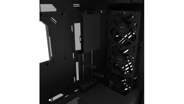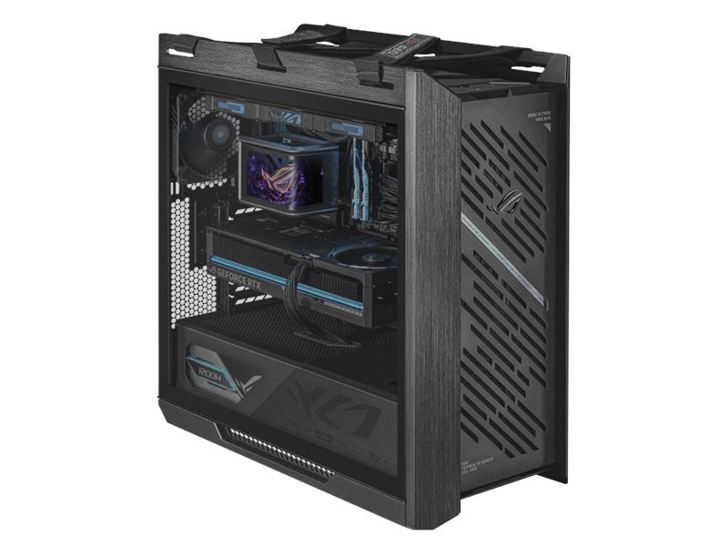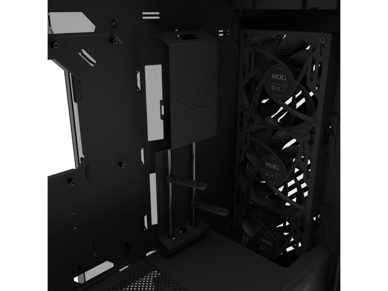 Das Gehäuse bietet Platz für zwei 360-mm-Radiatoren, die an den Befestigungspunkten an der Vorder- und Oberseite montiert werden können. Damit eignet es sich hervorragend für extrem leise Flüssigkeitskühlungs-Setups, wie beispielsweise ein High-End-System mit einer ROG Astral LC GeForce RTX™ 5090-Grafikkarte und einem ROG Ryuo IV SLC 360 ARGB AIO-CPU-Kühler.