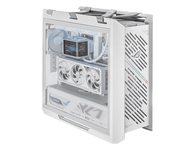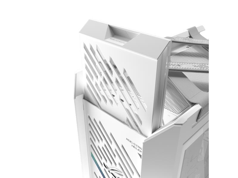 Das ROG Strix Helios II ist in Schwarz oder Weiß erhältlich und verbindet auf elegante Weise eine markante Gaming-Ästhetik mit innovativen Designelementen. Die Aluminiumfrontblende mit Diamantgitter besticht durch ihr unverwechselbares Lamellendesign und die auffällige Farbgebung in einem Ton. Nutzer mit einer komplett weißen Battlestation sollten sich die weißen ASUS GeForce RTX 50 Series Grafikkarten ansehen, um ein farblich abgestimmtes System von innen und außen zu erhalten.