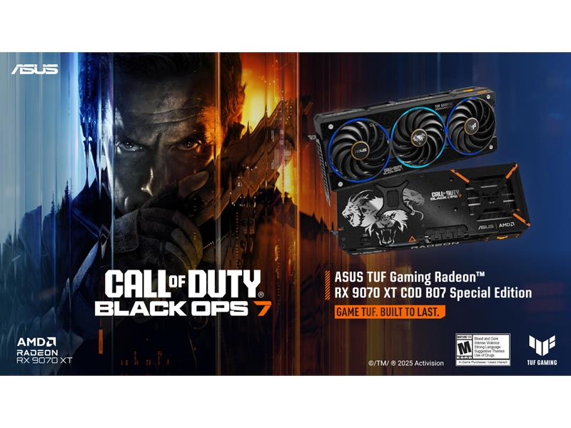 ASUS hat die Call of Duty®: Black Ops 7 Special Edition1 der TUF Gaming Radeon™ RX 9070 XT-Grafikkarte vorgestellt, die in Zusammenarbeit mit AMD und Call of Duty entwickelt wurde. Diese einzigartige Grafikkarte ist mit dem Call of Duty: Black Ops 7-Emblem mit orangefarbenen Akzenten im charakteristischen Black Ops-Stil versehen. Diese limitierte Auflage wurde erstmals auf der Call of Duty NEXT-Presseveranstaltung in Las Vegas am 30. September vorgestellt und wird bei ausgewählten Händlern weltweit zusammen mit einer digitalen Kopie der Standard-PC-Version des Spiels verkauft.