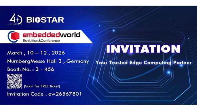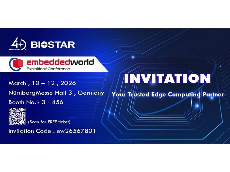 BIOSTAR invites industry professionals, system integrators, IPC innovators, and media representatives to visit Hall 3, Booth No. 3-456 at NürnbergMesse during Embedded World 2026 to explore its latest IPC and edge AI solutions designed to meet the evolving demands of smart industries.