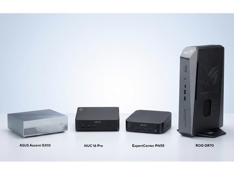 An der Spitze der KI-Innovationen steht der ASUS NUC 16 Pro mit dem neuesten Intel Core™ Ultra Series 3-Prozessor, der eine KI-Leistung von bis zu 180 TOPS bietet. Der ASUS ExpertCenter PN55, ein Copilot+ PC, verfügt über einen AMD Ryzen™ AI 400 Series Prozessor und eine NPU mit bis zu 55 TOPS. Für Gamer ist der ROG GR70 der erste ROG Gaming-Mini-PC mit einer AMD Ryzen 9 CPU und einer NVIDIA GeForce RTX 5070 oder NVIDIA GeForce RTX 5060 Laptop-GPU. Die Spitze der Desktop-KI-Leistung repräsentiert der ASUS Ascent GX10 KI-Supercomputer, der auf der NVIDIA Spark DGX™-Architektur und dem NVIDIA GB10 Grace Blackwell Superchip mit NVIDIA KI-Software-Stack basiert und eine Full-Stack-KI-Lösung für Entwicklung und Bereitstellung bietet.