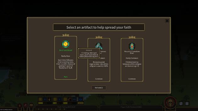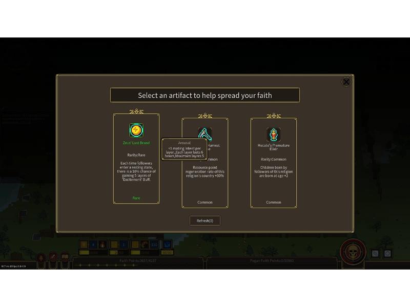 Progression is driven by faith, the game’s primary currency. Through manifesting miracles and answering prayers at temples, players convert humans into loyal believers. Accumulated faith unlocks powerful upgrades, divine abilities, and artifacts that function as “God Mode” enhancements, granting sweeping bonuses across the entire civilization.