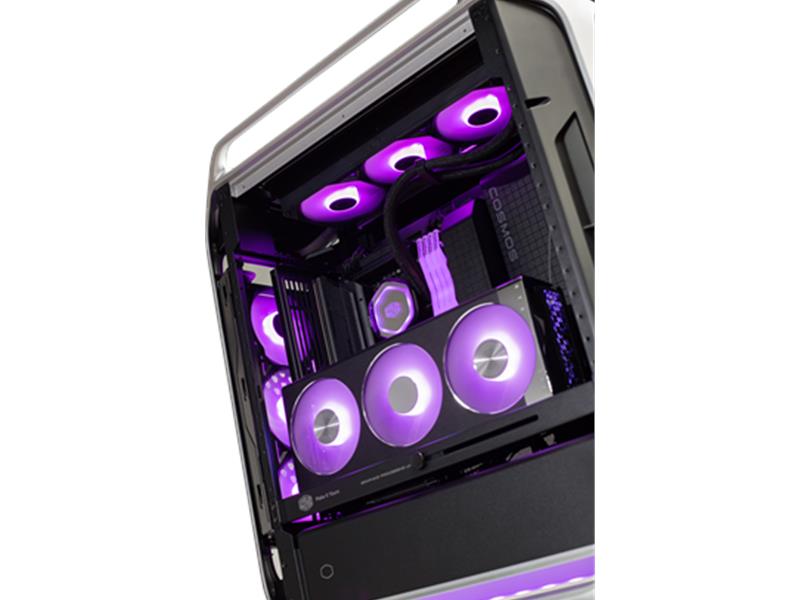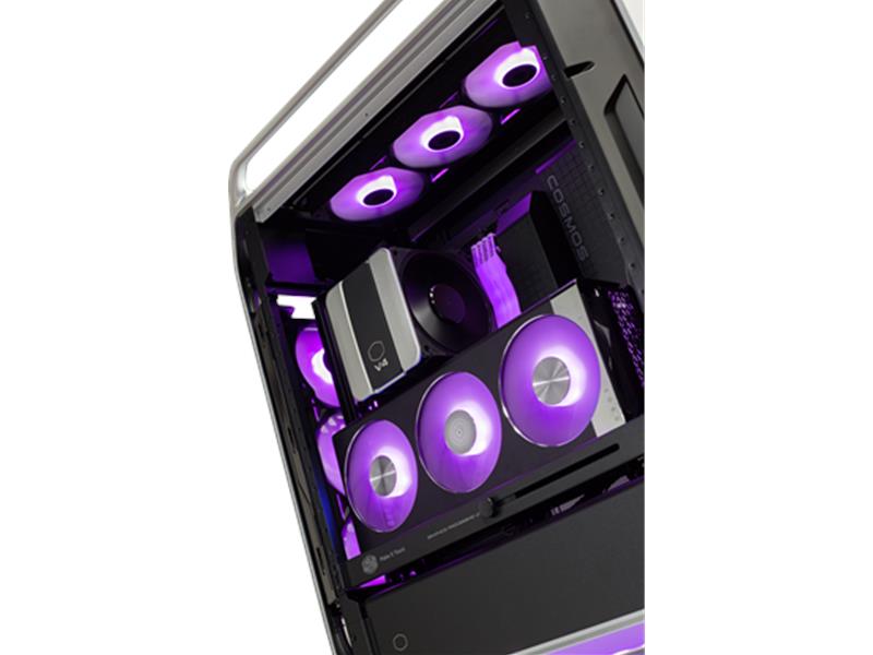 COSMOS Alpha preserves the series’ premium modular design with distinctive curved aluminum frames and tempered glass side panels. Under-case ARGB lighting adds a refined visual accent that complements performance builds and showcase systems.