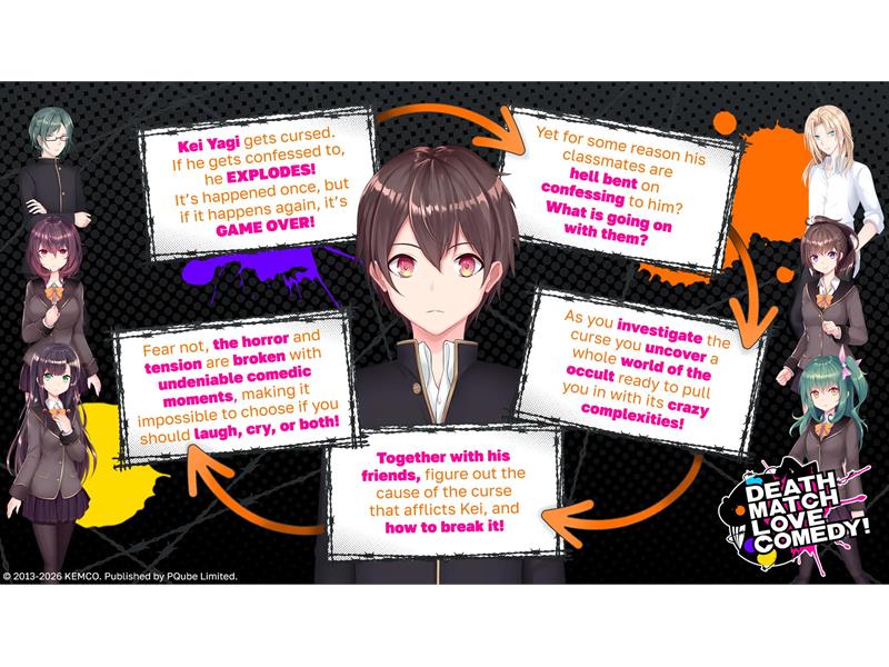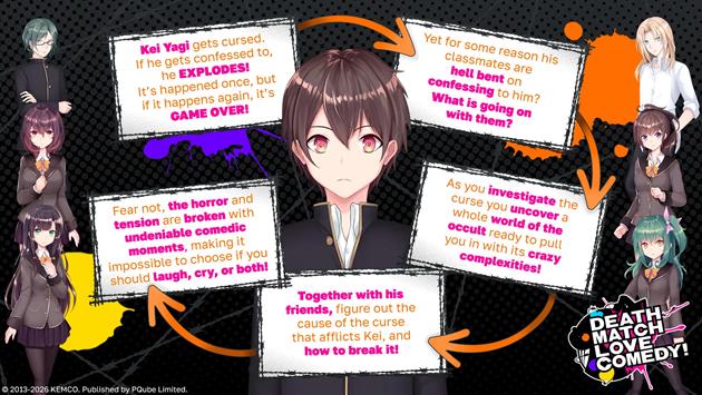 Published by PQube Ltd and developed by KEMCO, Death Match Love Comedy! is now available to purchase.