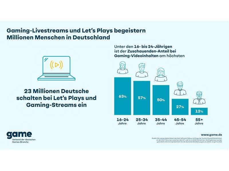 „Let’s Plays und Gaming-Livestreams sind ein faszinierender Ausdruck interaktiver Games-Kultur. Anders als im TV findet hier ein direkter Austausch zwischen Streamenden und Publikum statt. Diese Nahbarkeit ist auch ein Grund für die Beliebtheit der Streamerinnen und Streamer, die längst Star-Status haben, wie etwa die stundenlangen Warteschlangen bei den Autogrammstunden auf der gamescom zeigen“, sagt Felix Falk, Geschäftsführer des game. „Immer häufiger wählen daher auch klassische Medien oder die Politik die interaktiven Streams, um ein neues jüngeres Publikum zu erreichen: von ehemaligem Kanzlerkandidat Robert Habeck, der während des letzten Bundestagswahlkampfs bei Gaming-Streamer ‚HandOfBlood‘ zu Gast war, bis hin zu bekannten Medienformaten wie die ‚tagesschau' oder ‚Bares für Rares', die jetzt auch auf Twitch-Streams setzen.“