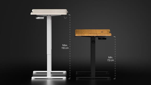 Die Serie wurde entwickelt, um sich nahtlos an den Ablauf des Tages anzupassen. Der eingebaute elektrische Höhenversteller mit Speicher für bis zu drei Einstellungen ermöglicht eine präzise Höhenverstellung von 72 bis 120 cm beim L-Modell und von 72 bis 118 cm beim S-Modell, sodass man bequem zwischen Sitzen und Stehen wechseln kann. Das Ergebnis: eine verbesserte Körperhaltung und eine geringere Belastung der Wirbelsäule.