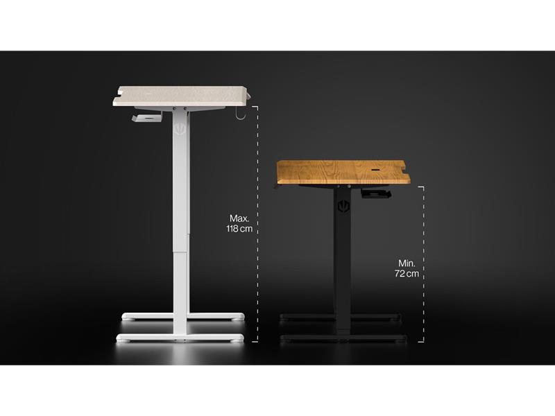 Entworfen für lange Tage und Nächte am PC, ist jeder Schreibtisch mit einem elektrischen Höhenverstellsystem mit Speicherfunktionen ausgestattet, das einen reibungslosen Übergang zwischen Sitz- und Stehposition ermöglicht. Diese Lösung hilft, die Belastung der Wirbelsäule zu reduzieren und ermöglicht es den Nutzern, die Kontrolle über ihren Arbeitsbereich zu behalten, ohne ihren täglichen Rhythmus zu stören - egal, ob der Schreibtisch für Arbeit, Studium oder Freizeit genutzt wird.