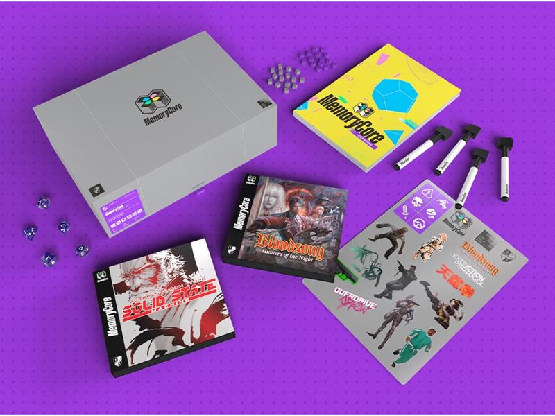 The games come in iconic late-’90s packaging, and each title introduces its own unique characters, mechanics, rules, and distinctive design elements layered on top of the MemoryCore System, carefully adapting the aesthetic, narrative, and design feeling of its disc-era inspiration to the table.