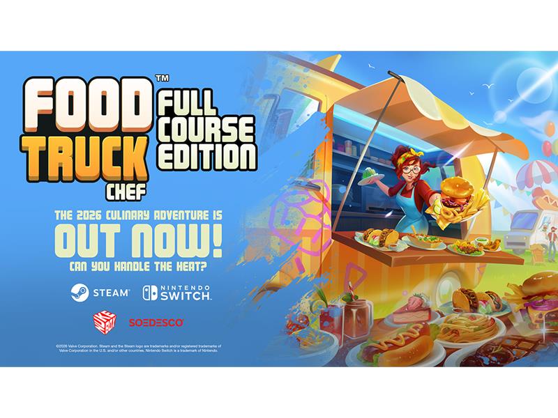 SOEDESCO® and developer Nukebox Studios are pleased to announce that Food Truck Chef: Full Course Edition is now available on Steam and Nintendo Switch. The launch is accompanied by a new trailer showcasing its dynamic cooking and management gameplay across different locations.