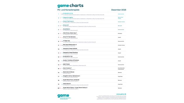 game Charts im Dezember: Das waren die erfolgreichsten PC- und Konsolenspiele im Weihnachtsgeschäft