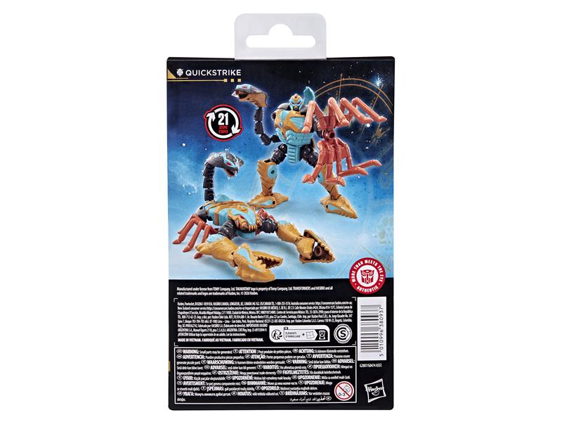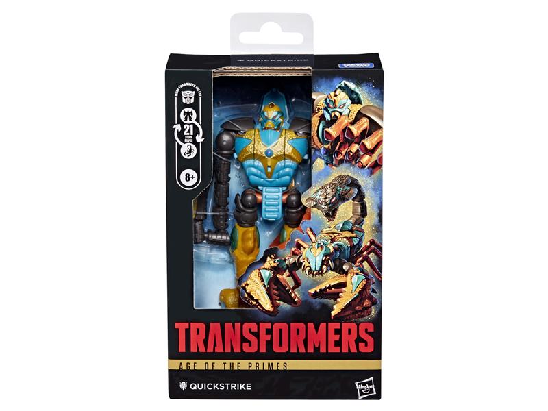 Die Figuren der Deluxe-Klasse erweitern das Universum noch weiter: Quintus Prime verwandelt sich in ein Squid-Raumschiff, Targetmaster Sureshot in einen Dünenbuggy mit einem Mini-Spoilsport-Blaster und Combaticon Blast Off hebt als Space Shuttle ab und ist Teil des Bruticus-Combiners. Quickstrike wechselt vom Roboter- in den Skorpionmodus mit beweglichem Koberschwanz, und Junkion Jalopy verwandelt sich in ein Geländewagen und teilt sich gleichzeitig in Rüstungen für andere Figuren auf. Alle Figuren verfügen über detaillierte Dekorationen, bewegliche Gelenke für dynamische Posen und Zubehör, das in verschiedenen Modi angebracht werden kann. Diese Veröffentlichungen sind sowohl für die Ausstellung als auch für interaktives Spielen konzipiert, sodass Fans die Saga der Age of the Primes zum Leben erwecken können.