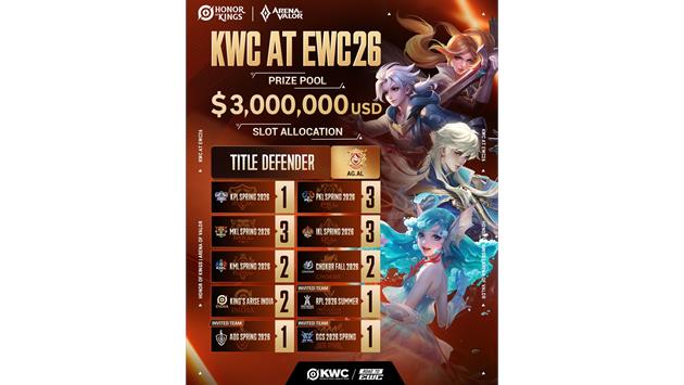 The Honor of Kings World Cup at 2026 Esports World Cup (KWC at EWC26) is set to kick off on July 30th in Riyadh, Saudi Arabia, as part of the 2026 Esports World Cup (EWC26). Taking competition to new heights with an innovative cross-title format, KWC at EWC26 brings together top teams from both Honor of Kings (HoK) and Arena of Valor (AoV), introduces additional AoV heroes into the tournament patch, and expands its global footprint with new regional representation from India, Thailand, Vietnam, as well as Taiwan, Hong Kong and Macau region. This landmark edition marks a thrilling evolution in competitive play, uniting the best of both worlds for players and fans alike.