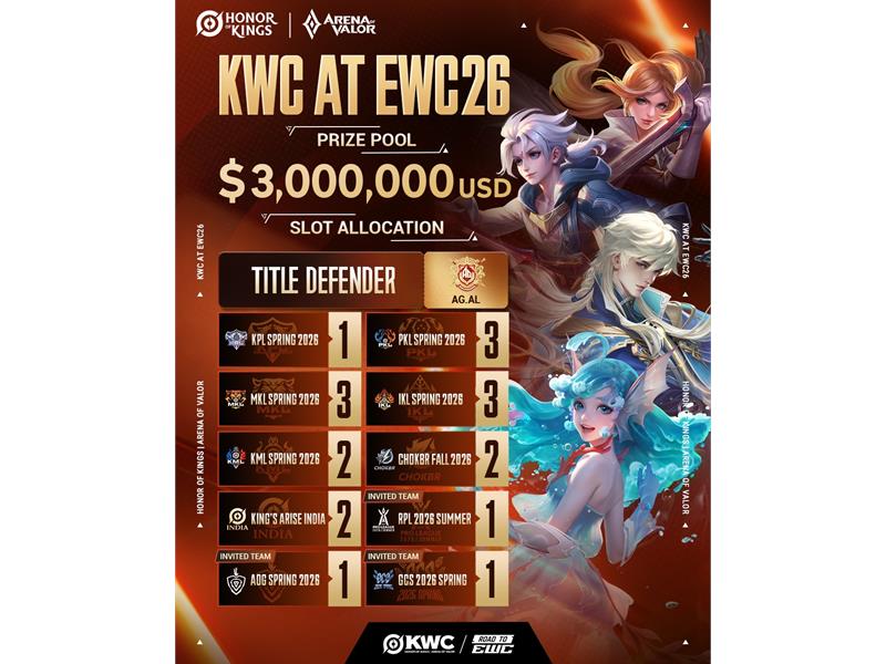 Building on a milestone 2025, when the combined MAU of the HoK titles surpassed 260 million, KWC at EWC26 will deliver a thrilling cross-title MOBA experience on the global stage. Top teams from across the leagues will compete, offering players a unique opportunity to shine in an epic cross-title MOBA showdown and demonstrate their skill, strategy, and teamwork on an unprecedented international stage.