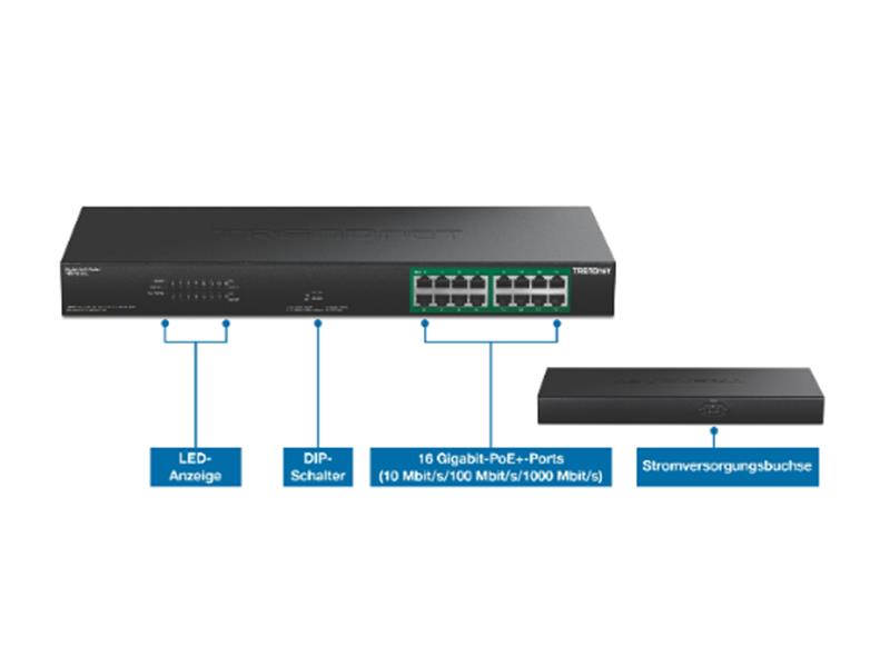 Der neue 16-Port Gigabit PoE+ Switch TRENDnet TPE-TG160g ist ab sofort für einen empfohlenen Verkaufspreis von 299,99 Euro inkl. MwSt. im Fachhandel und im TRENDnet Online-Shop erhältlich.