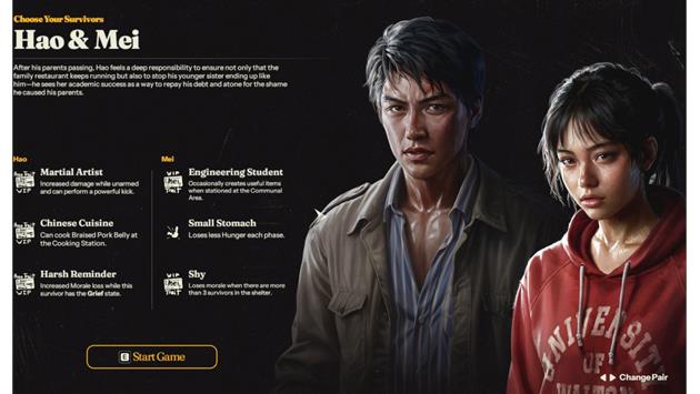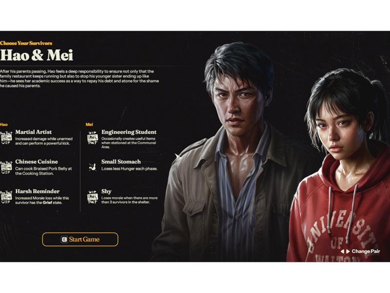 Speaking of new survivors, Hao is joined by Mei. Brother and sister, these new survivors perfectly balance one another. Where Hao packs a punch, and a fairly devastating roundhouse kick, Mei prefers a more cautious approach. The Yi family will be playable from the start, becoming the sixth duo players can select to undertake their perilous quest for freedom.