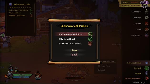 Unlock conditions to freely choose your starting weapon at camp, giving you more control before the run begins.