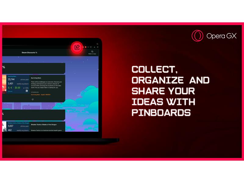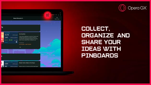 Auf Pinnwänden können Links und Videos in wenigen Klicks eingeordnet werden und so in übersichtlichen und ansprechenden Kacheln mit anpassbaren Covern zur mühelosen Wiedererkennung sortiert werden. Dabei können Spieler Pinnwände für die neuesten Spieleankündungen, Guides und Einkaufslisten erstellen, um bei der späteren Suche Zeit zu sparen oder schnell auf ihre Lieblingswebseiten zurückzukommen.