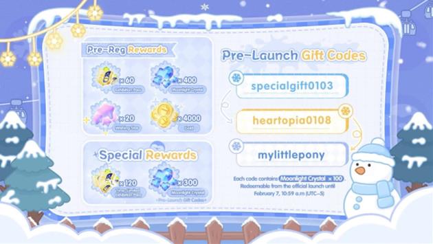 Anyone who pre-registered will receive Gold x4000, Wishing Star x20, Moonlight Crystal x400, and Exhibition Pass x60. As well as that, special rewards will be granted to those who use any of the following codes: