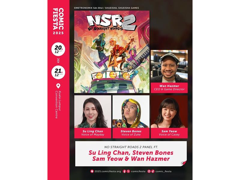 Featuring appearances from the voice actors behind NSR2’s beloved characters - Su Ling (Mayday), Steven Bones (Zuke), and Sam (Casey) - as well as a talk from Wan Hazmer (Game Director), fans can find out more about the eagerly anticipated sequel to No Straight Roads, before attending a meet and greet between 16:00-17:00 MYT at the Creative Factor Panel Room. For more information and updates on COMIC FIESTA, keep updated on X and Facebook.