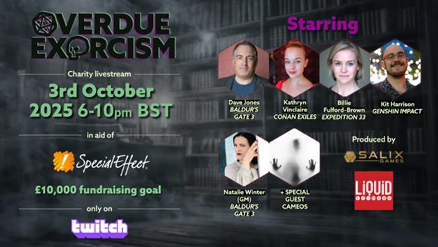 Salix Games and creative agency Liquid Crimson are teaming up to deliver a live, one-night-only tabletop RPG performance: Overdue Exorcism, created especially for One Special Day, in support of the games charity SpecialEffect.
