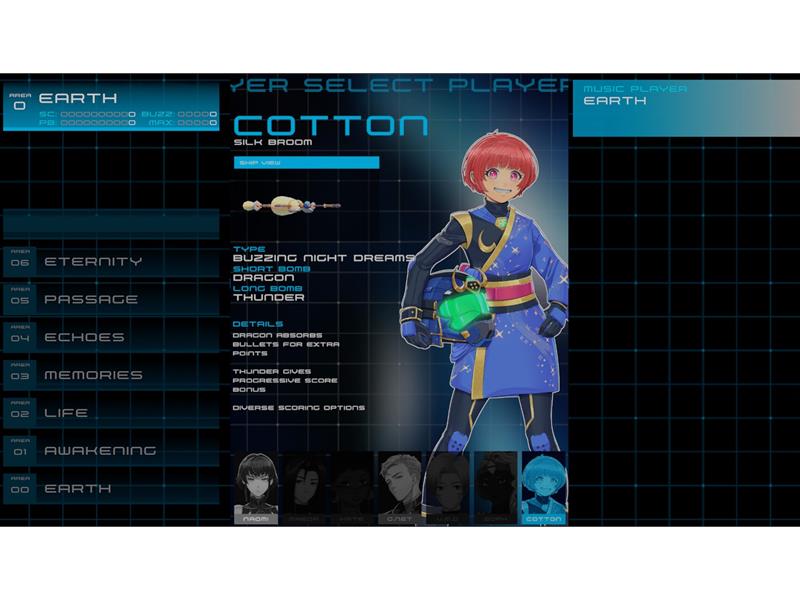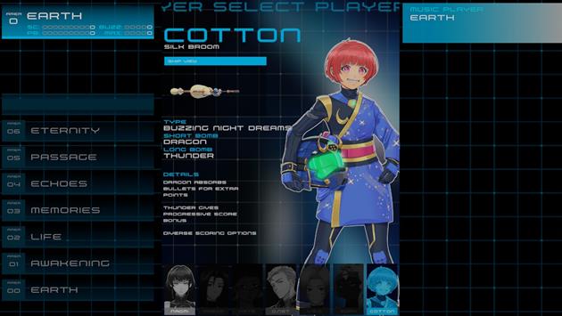Guest character: Cotton from the Cotton series is fully playable with her own ship and abilities