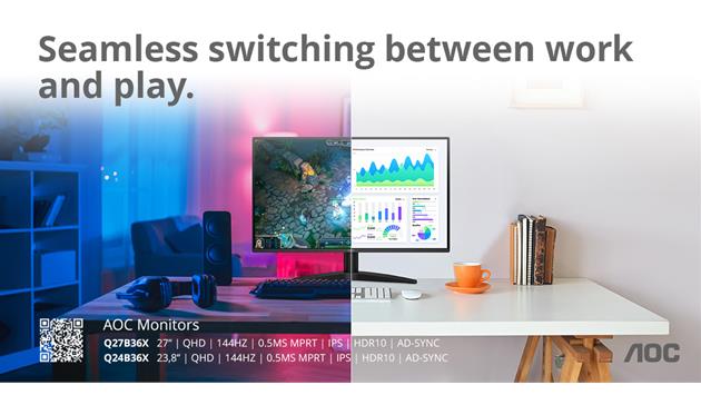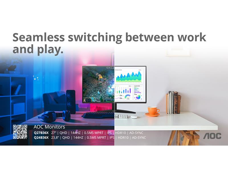 QHD-Monitore für mehr Vielseitigkeit zu Hause und im Büro: AOC Q24B36X und Q27B36X mit 144 Hz und 0,5 ms MPRT