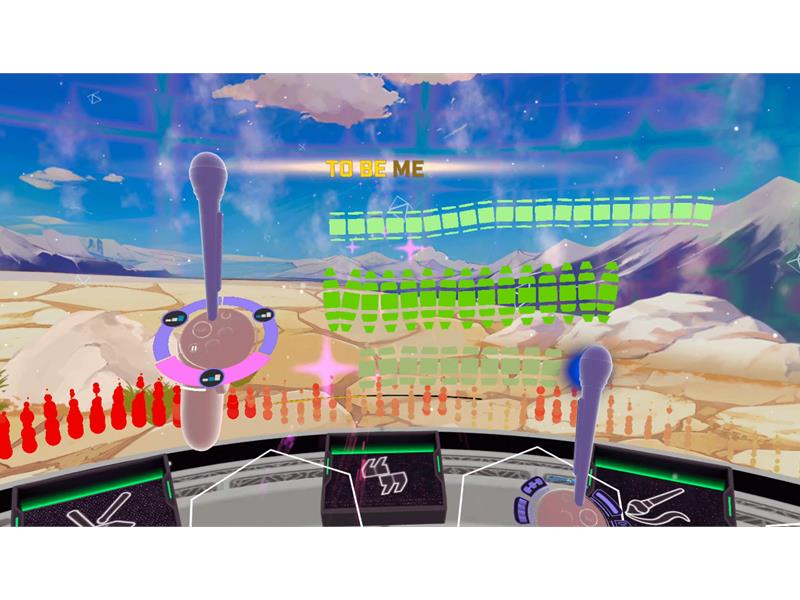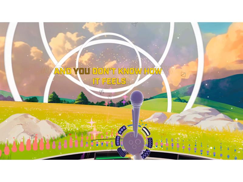 Simply grab the headset, pick a song from the catalog, and the stage is yours. Lyrics float clearly in front of you in one of a dozen immersive worlds, as the world bends and shifts with your voice. Hit a soaring note and the sky might ignite in bursts of color; whisper a verse and the scene softens around you. Every chorus fills the space with motion, light, and the feeling of a world alive to your voice.
