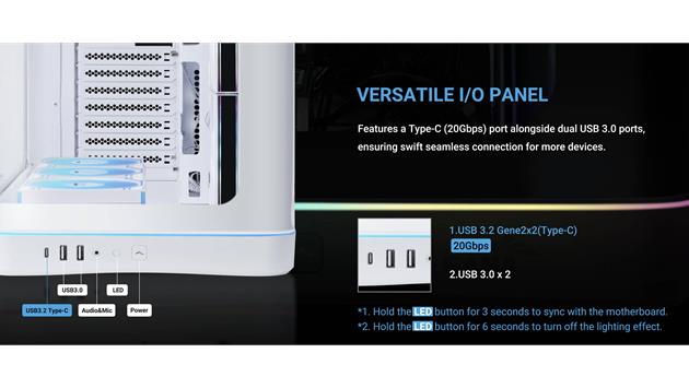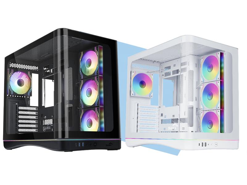 Mit der zunehmenden Leistungsfähigkeit von PC-Hardware verstecken Nutzer ihre Systeme nicht mehr unter dem Schreibtisch. Das neue SAMA V62 wurde für Anwender entwickelt, die ihr System präsentieren möchten. Es kombiniert gebogenes Panoramaglas, auffällige integrierte Beleuchtung und leistungsstarke Kühlungsunterstützung in einem übersichtlichen, nutzerfreundlichen Gehäuse.