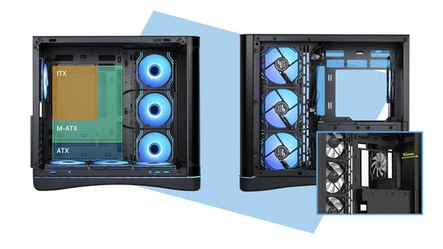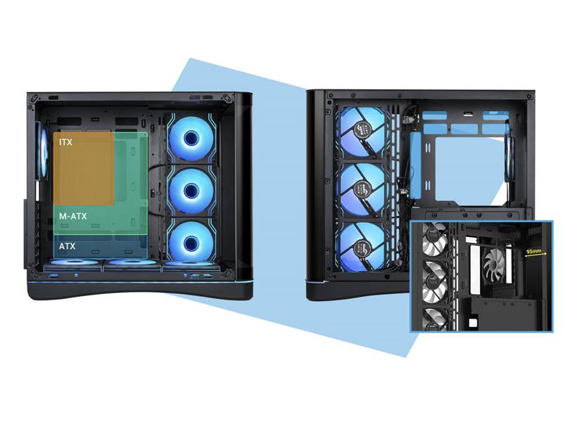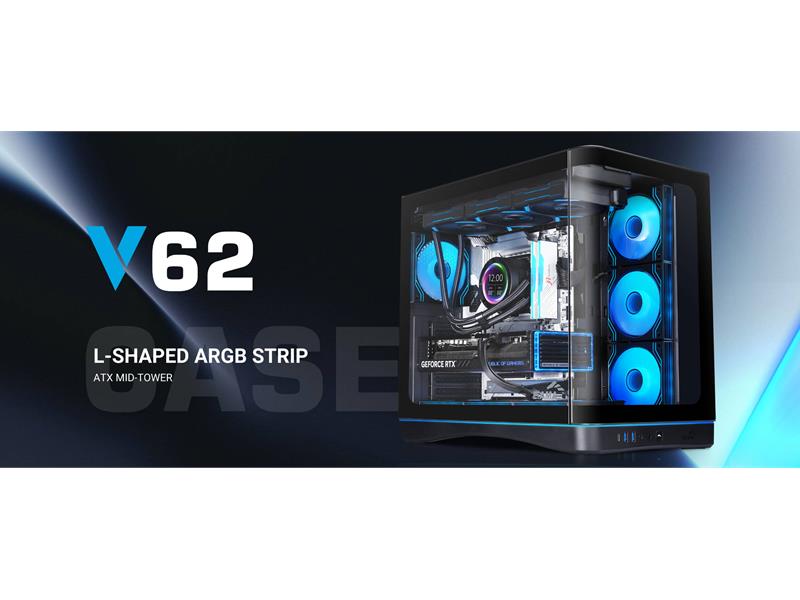 Mit sieben vorinstallierten ARGB-Lüftern und der Unterstützung für große Radiatoren bietet das V62 sowohl optische Wirkung als auch thermische Leistung direkt nach dem Auspacken.