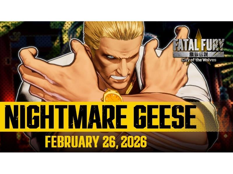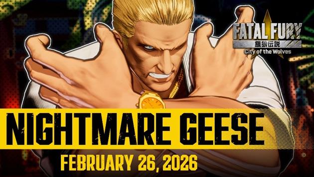 SNK Corporation today announced a February 26, 2026 release date for Nightmare Geese, the next DLC fighter for FATAL FURY: City of the Wolves. The third round of the Fatal Fury x Street Fighter crossover will also roll out at the same time.