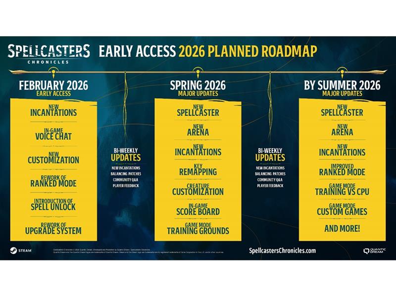 Quantic Dream eine Roadmap für den Early Access vor, welche die kommenden Entwicklungsphasen abbildet. Im Laufe dieser Phasen wird das Studio schrittweise zentrale Features eines lebendigen, sich weiterentwickelnden Spiels implementieren - darunter Voice-Chat, erweiterte kosmetische Anpassungen, ein überarbeiteter Ranglistenmodus, ein verbessertes Freischalt- und Fortschrittssystem für Zaubersprüche, tägliche Quests und Shop-Updates.