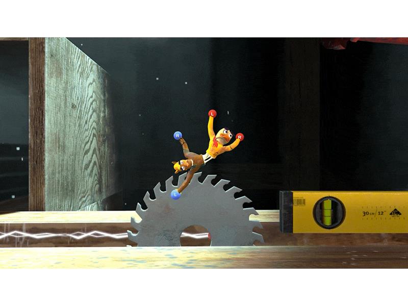In Stuck Together, two childhood toys have been glued into one by a tyrannical teenager and you and a friend will need to engage in co-op climbing chaos on your quest to freedom. Avoid fire, navigate the dark, and dodge falling debris. The sadistic “hand-tagonist” always looms, too, ready to swat at the player characters and send them flying through the air, knocking back progress.