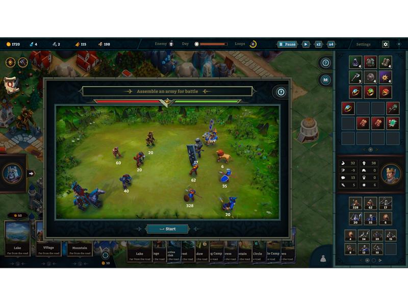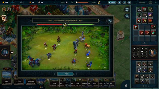 Kingdom Loop’s gameplay mixes kingdom building, resource management, army development, and combat.