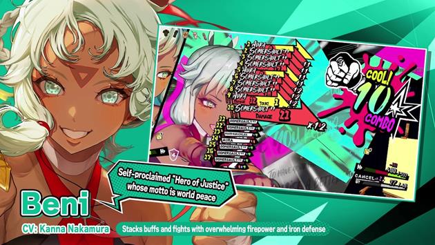 Beni, on the other hand, is a proud martial artist and self-proclaimed hero who fights with unshakable resolve. She consumes gems to gain shields, healing and powerful attack buffs, specializing in stacking enhancements that transform her strikes into overwhelming blows or fortify her defenses to withstand any challenge. Sworn to punish evil and pursue justice, she embodies both strength and conviction.