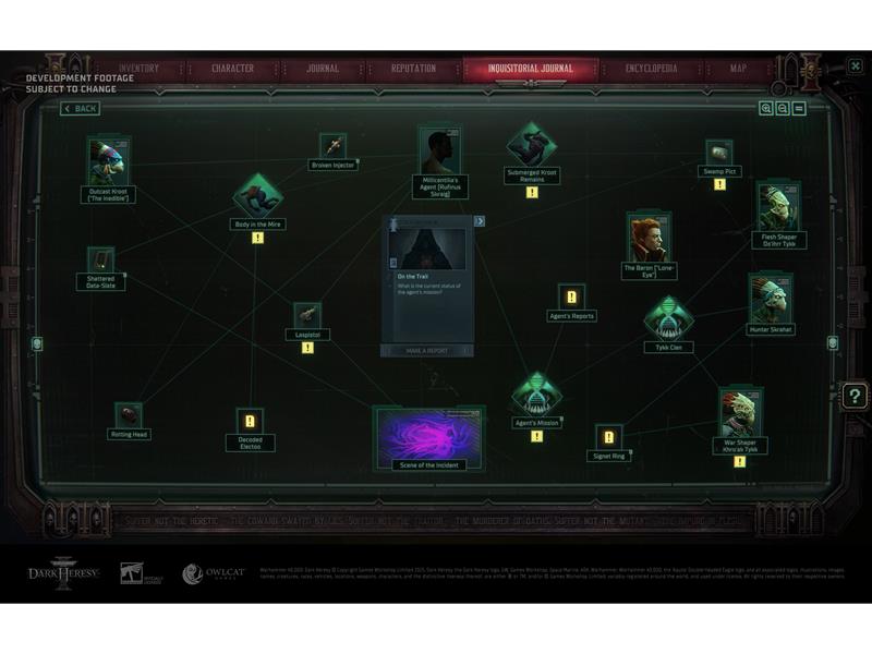 Bevor am 16. Dezember die Alpha für Supporter zu Warhammer 40,000: Dark Heresy auf Steam anläuft, haben Owlcat Games eine neue Auswahl an Screenshots veröffentlicht. Sie zeigen Party-Mitglieder, detaillierte Umgebungen, grausige Kampfszenen und sogar einen ersten Blick auf eine der Mindmaps aus dem neuen Detektiv-System.