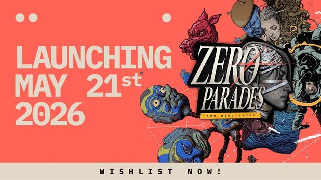 The espionage RPG ZERO PARADES: For Dead Spies arrives May 21 on Steam, Epic Games Store, and GOG with full English voice-over and full text localization in four additional languages. Further languages and a PlayStation 5 release follow later this year.