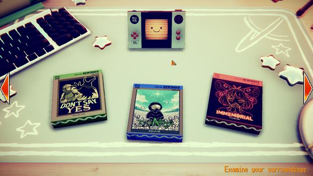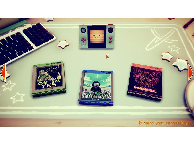 Enjoy an immersive experience of storytelling on a nostalgic desk, together with the mysterious retro game console "Newie."
