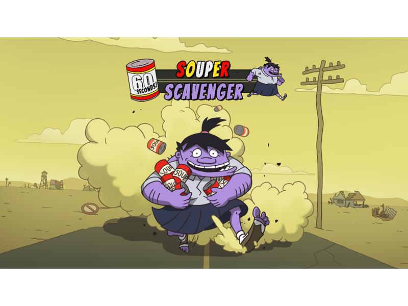 60 Seconds! Souper Scavenger is a narrative-based runner where you run, jump, scavenge and survive. The McDoodle family has survived the nuclear apocalypse in the safety of their fallout shelter, but their troubles are far from over. Head out into a hostile wasteland as Mary Jane to collect that most precious of resources - soup! Avoid raiders, ill-parked bicycles, remains of a collapsed civilization, mutant marathons, and more as you speed through a procedurally generated wasteland. The game will also feature quests, unlockable characters and items to collect from the original 60 Seconds!.