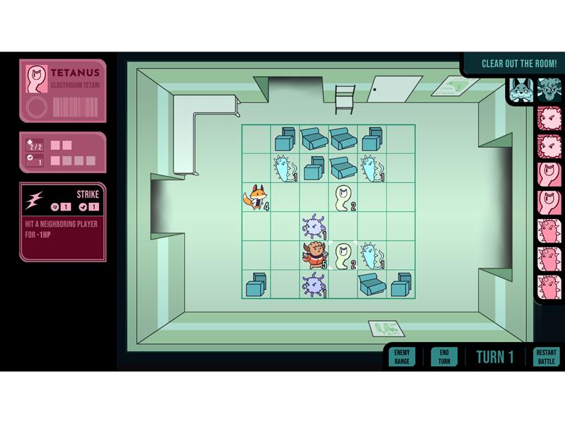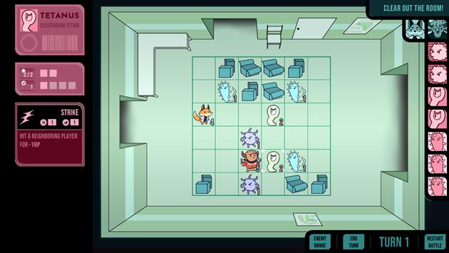 After Midnight is a game that mixes turn-based strategy with puzzle gameplay and a plot that’s explained in the style of a visual novel. The gamer takes on the role of medical professionals such as a doctor, a nurse, and a paramedic, and uses their passive and active combat skills to fight mutated viruses that invaded the hospital. Strategic thinking, planning your actions, and teamwork are the keys to success. Depending on the character chosen during the combat turn, the player can heal their teammates, attack the opponents in a direct fight, or even use area attacks from a distance - all to defeat diversified enemies that multiply and get stronger with every turn.
