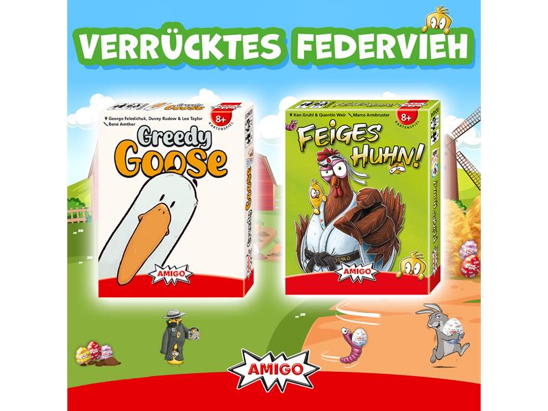 Diese beiden Spiele von AMIGO bringen die Familie nach der Ostereiersuche zusammen und passen thematisch perfekt zum Feiertag. Egal ob gierige Gans oder feiges Huhn, das verrückte Federvieh darf an Ostern nicht fehlen.