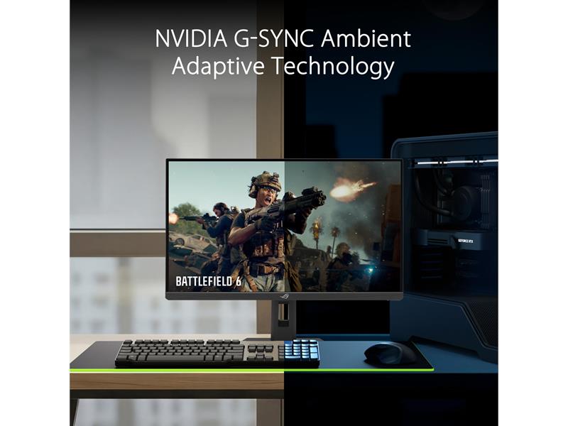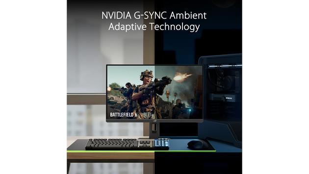 Mit der NVIDIA G-SYNC Ambient Adaptive-Technologie erkennt der integrierte Sensor des Monitors die Umgebungsbedingungen und passt die Bildschirmhelligkeit und Farbtemperatur automatisch an, um ein angenehmeres Seherlebnis zu gewährleisten.