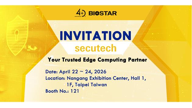 BIOSTAR, a leading manufacturer of IPC, edge computing solutions, and industrial motherboards, today announces its participation at Secutech 2026, taking place from April 22 to 24 at the Nangang Exhibition Center, Hall 1, 1F, in Taipei, Taiwan. At booth 121, BIOSTAR will showcase its latest AI-powered IPC and edge computing solutions, designed to meet the growing demands of smart security and smart city applications.