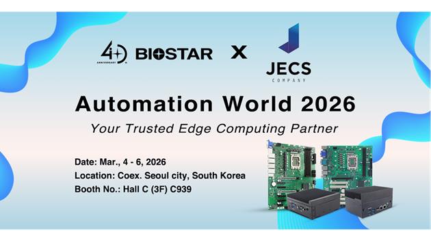 BIOSTAR and JECS warmly invite industry professionals, system integrators, and media representatives to visit Hall C (3F), Booth C939 at COEX during Automation World 2026 to explore BIOSTAR’s latest industrial computing solutions and learn more about the BIOSTAR and JECS partnership.