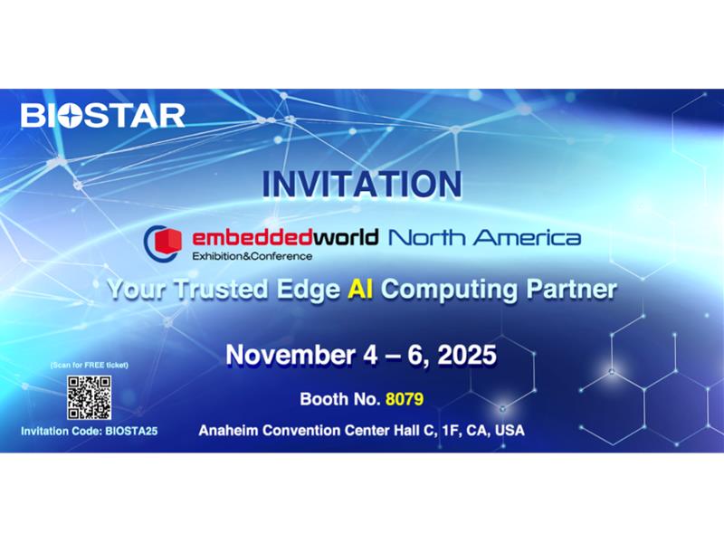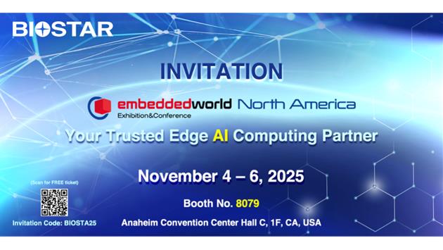 BIOSTAR, a leading manufacturer of edge computing solutions, industrial motherboards, graphics cards, and storage devices, is excited to announce its participation in Embedded World North America 2025, taking place from November 4-6, 2025, at the Anaheim Convention Center Hall C, CA, USA, Booth No. 8079.