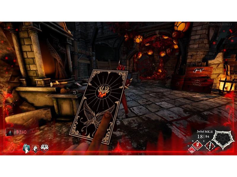 Between waves, the Deck of Fates lets players draw upgrade cards for their character, while the Blood Infuser adds special properties to weapons. The combinations found across a run are what keep things different each time. Each map also contains environmental lore, clues about who the Blood Reavers were, how the demons can be stopped and what’s really driving the invasion.