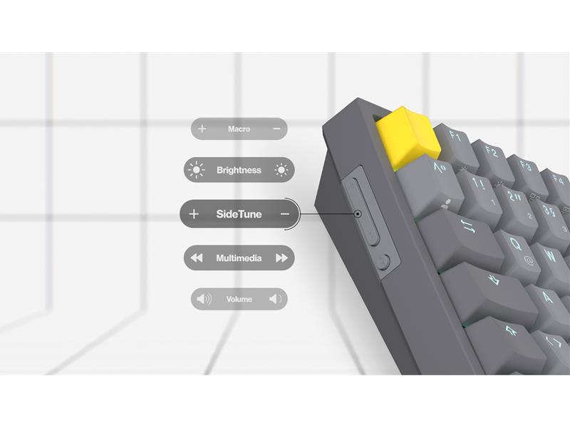 Inspired by smartphones, the Celeris 1800 features SideTune - a programmable side control panel located on the left edge of the keyboard. By keeping media and productivity controls within easy reach, users can adjust volume or trigger macros without lifting their right hand from the mouse.